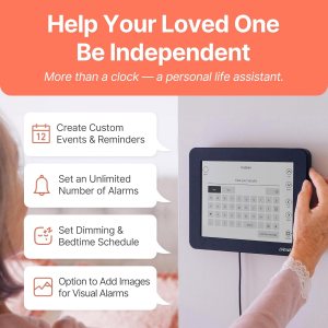 This large display dementia clock clearly shows the day, date, and time in a way that’s easy to understand, helping reduce confusion and anxiety throughout the day.